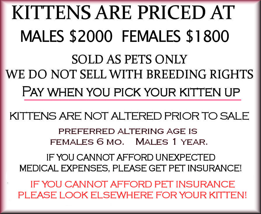 Please be respectful and DO NOT Reserve a kitten unless you fully intend to purchase.