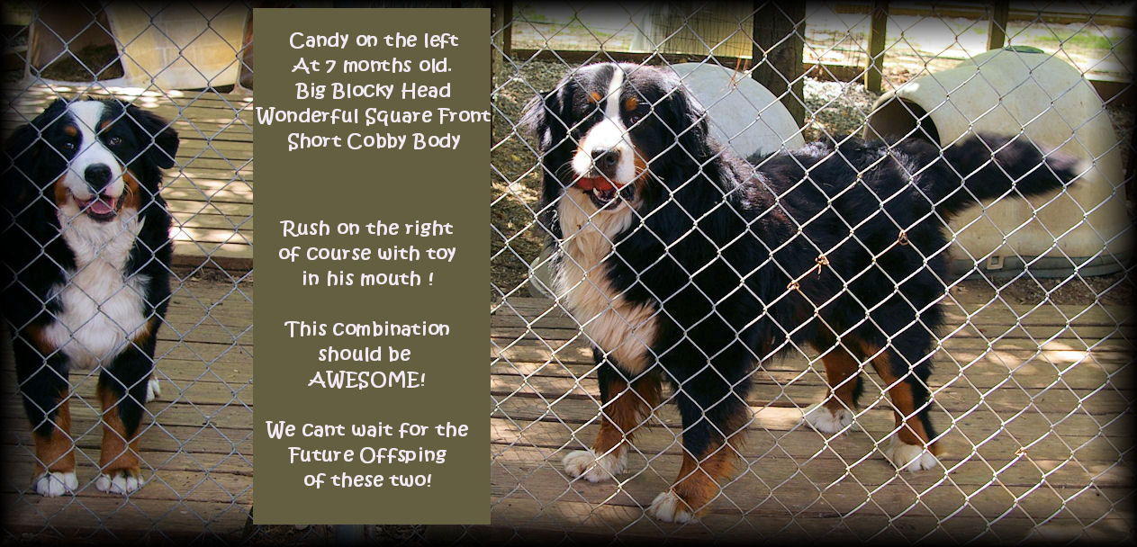 We no longer breed berners, please check our puppy page for our friends links for your next Berner Baby!