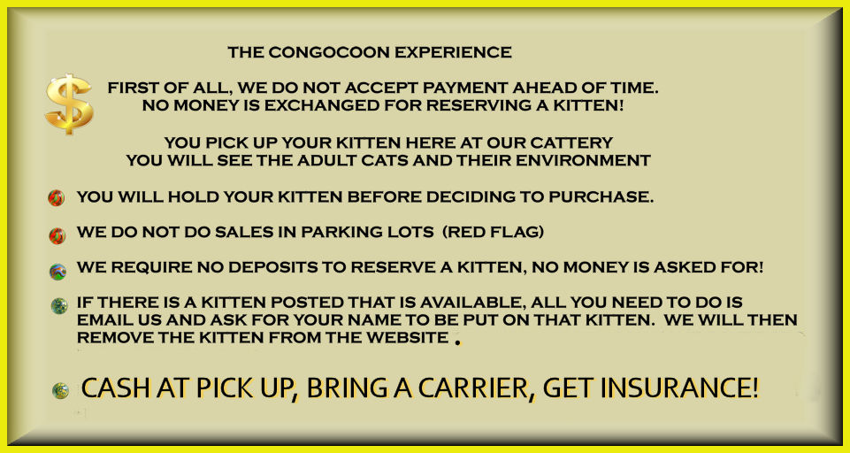We have worked too many years to develop our "Congocoon" type of Maine Coon, to have our name hijacked by an imposter!